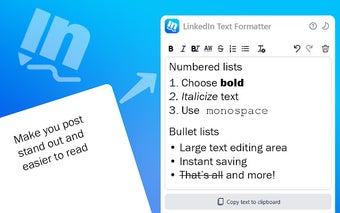 Formatter Teks LinkedInadalah perangkat lunak gratis untuk Chrome, yang merupakan bagian dari kategori 'Add-ons & Tools'.